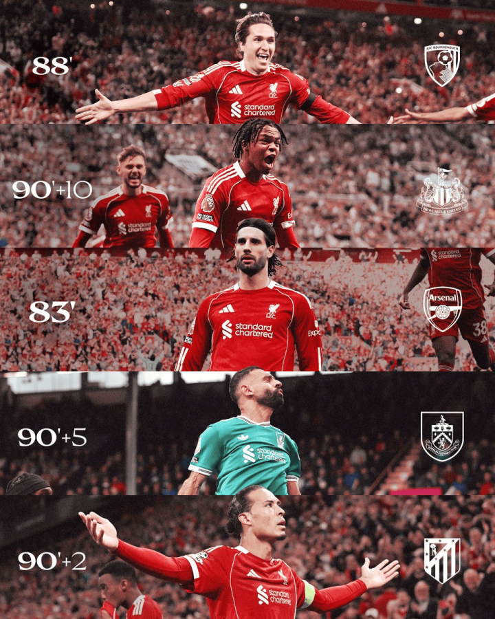 新赛季利物浦在英超和3欧冠赛场取得开局五连胜,这五场比赛,他们都在80分钟后破门制胜。